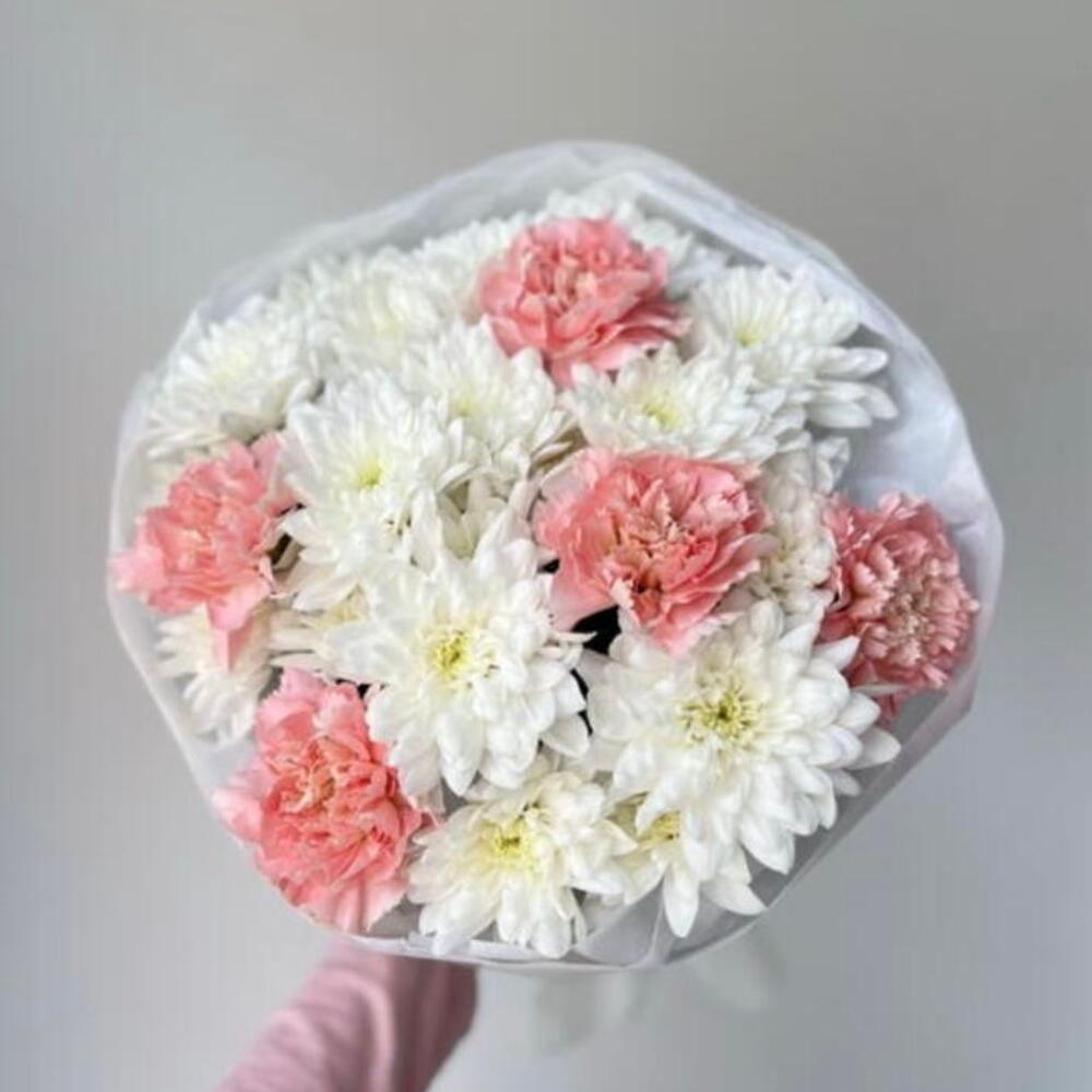 pink carnations - 5 pcs chrysanthemum baltika - 6 pcs