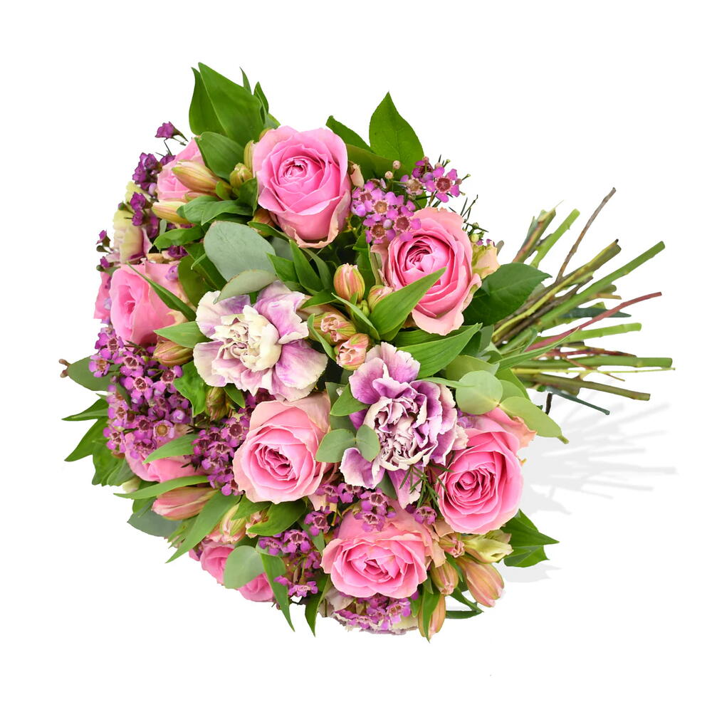 pink carnations - 4 pcs pink alstroemeria - 4 pcs pink wax - 4 pcs pink roses - 8 pcs