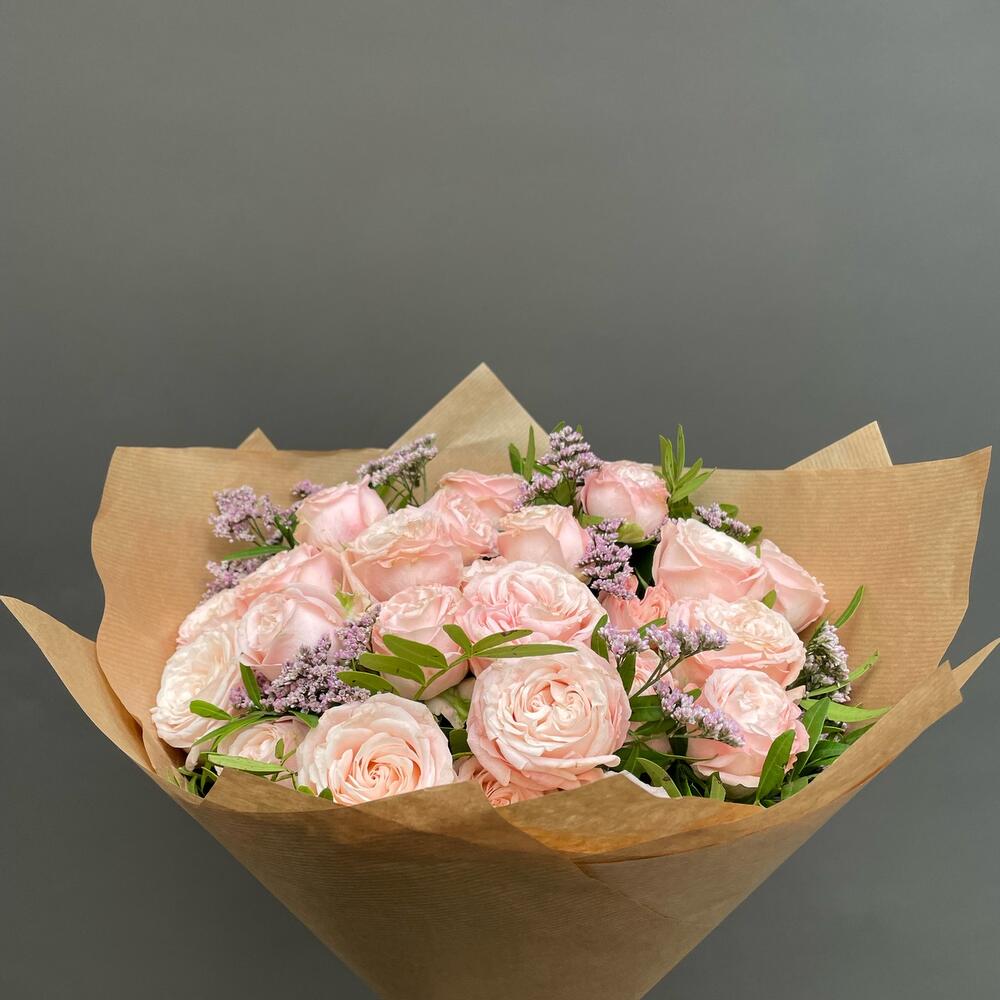 Spray rose - 6 pcs Limonium - 3 pcs Pistachio - 5 pcs craft paper - 5 pcs