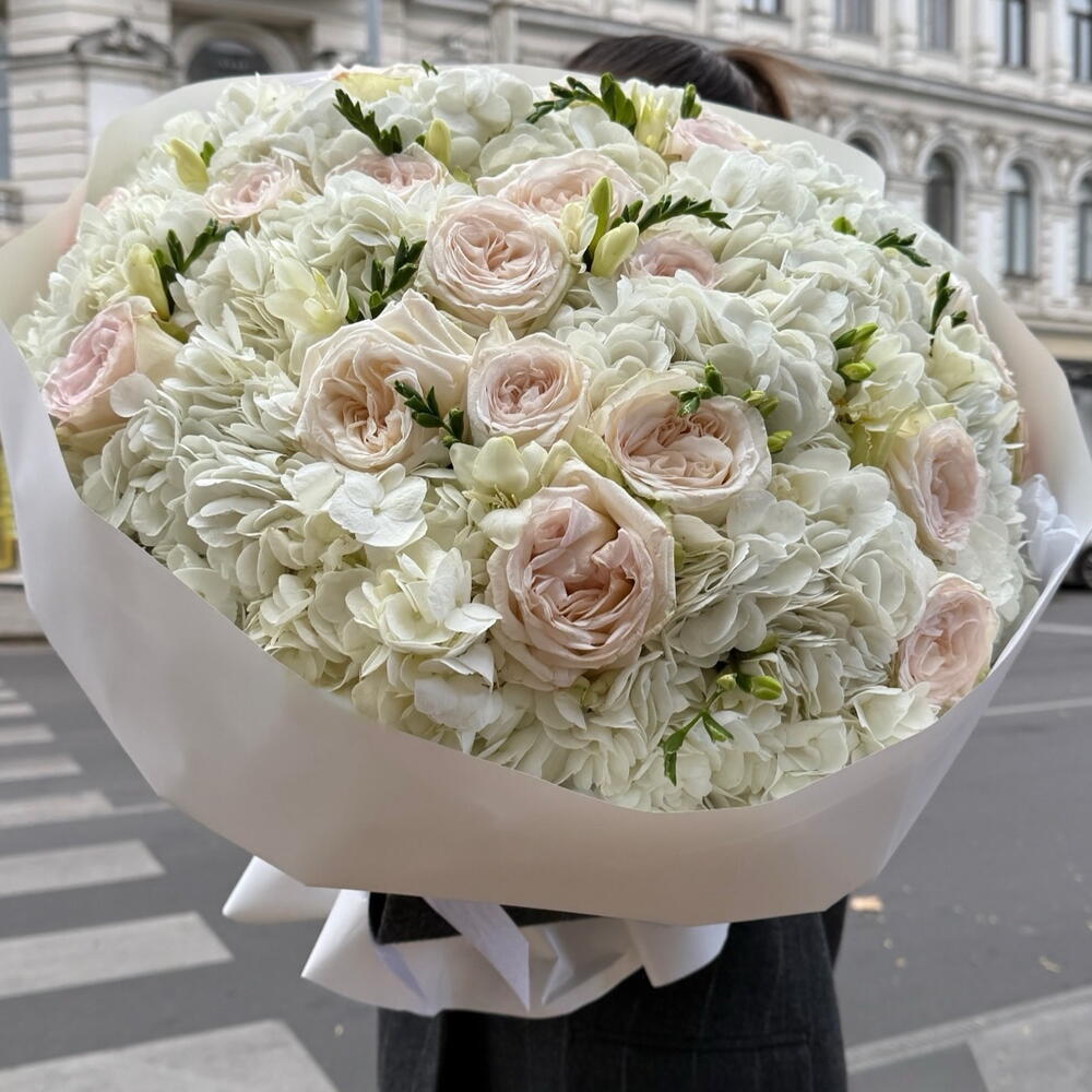 Hydrangea - 12 pcs Freesia - 10 pcs roses - 15 pcs