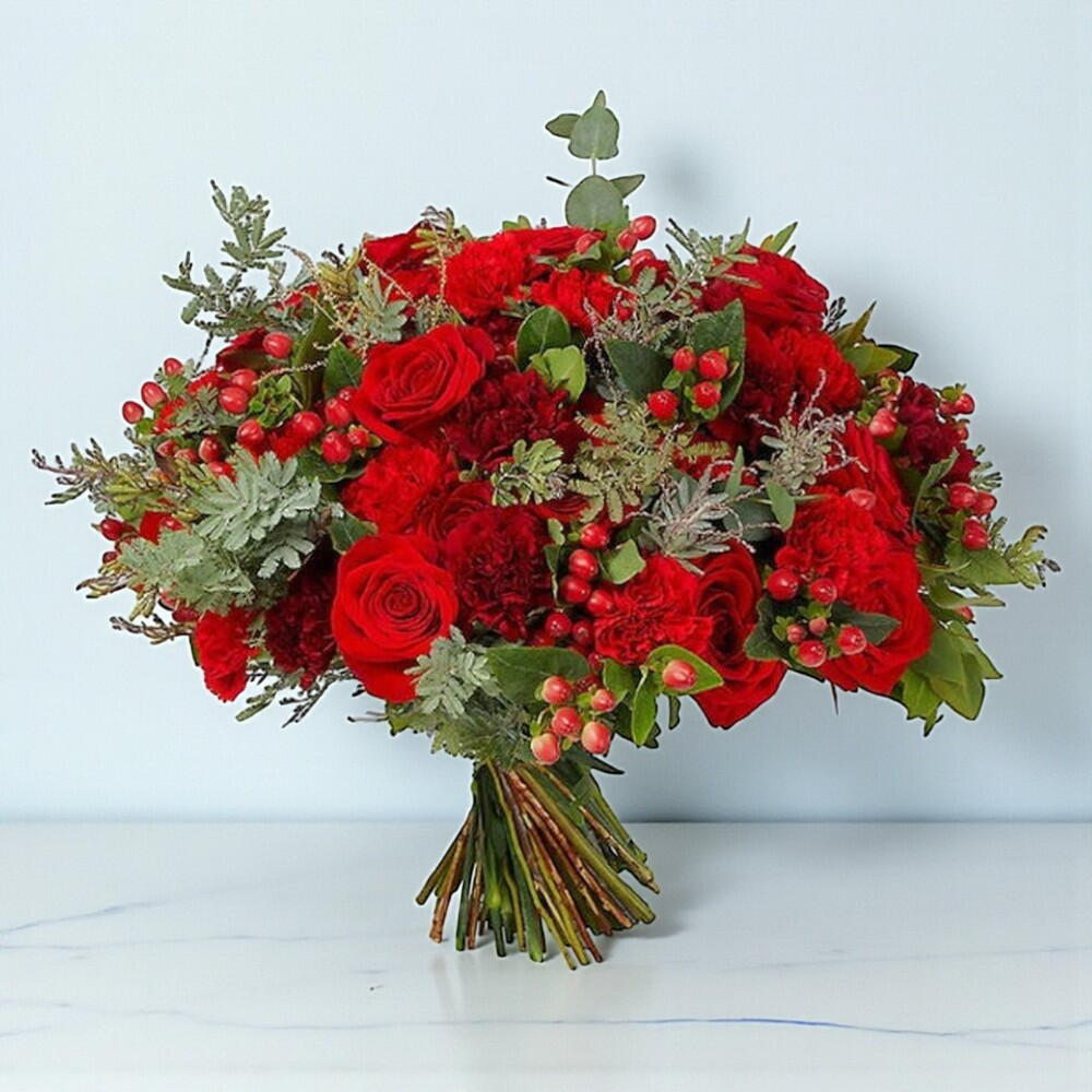 Celebrate with the True Love bouquet from Moyses Stevens. Made using our premium red roses and carnations, fragrant eucalyptus and fresh hypericum berries, its our Valentines favourite. Carefully hand-tied and wrapped for the perfect finish.