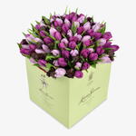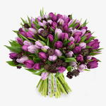 Our finest tulips hand-tied and wrapped in all their glory. Sometimes the simple things in life are worth emphasising—and that’s exactly what we’ve done with this bouquet. Elegant deep violet tulips are combined with lilac and royal purple varieties for a dashing twist on a classic Moyses bouquet.