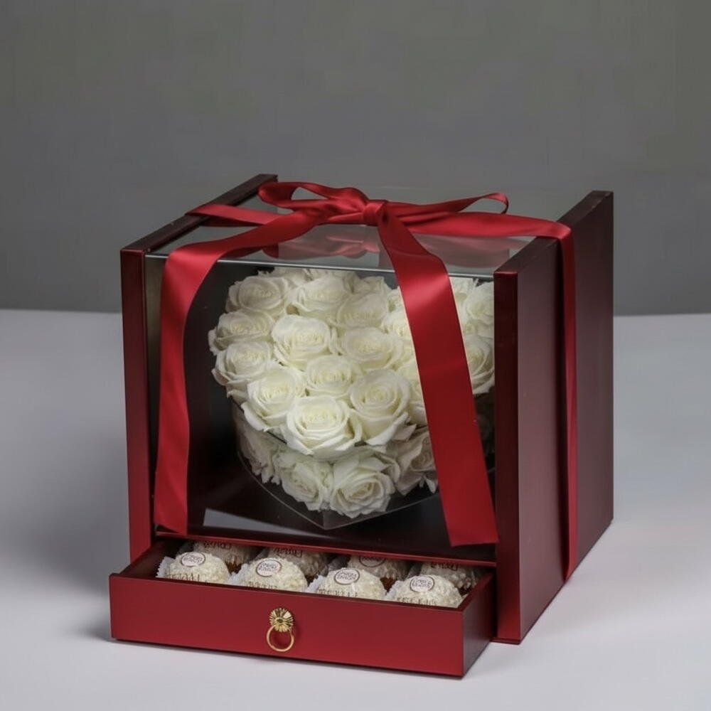 White rose - 25 pcs rafaello chocolate - 24 pcs