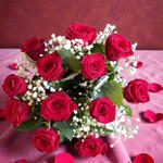 12 Red Roses with Gypsophilla