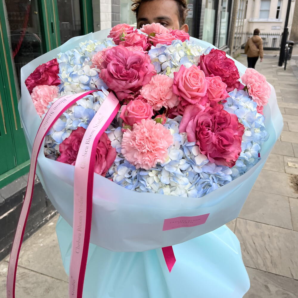 hydrangeas - 5 pcs carnation - 5 pcs roses - 8 pcs