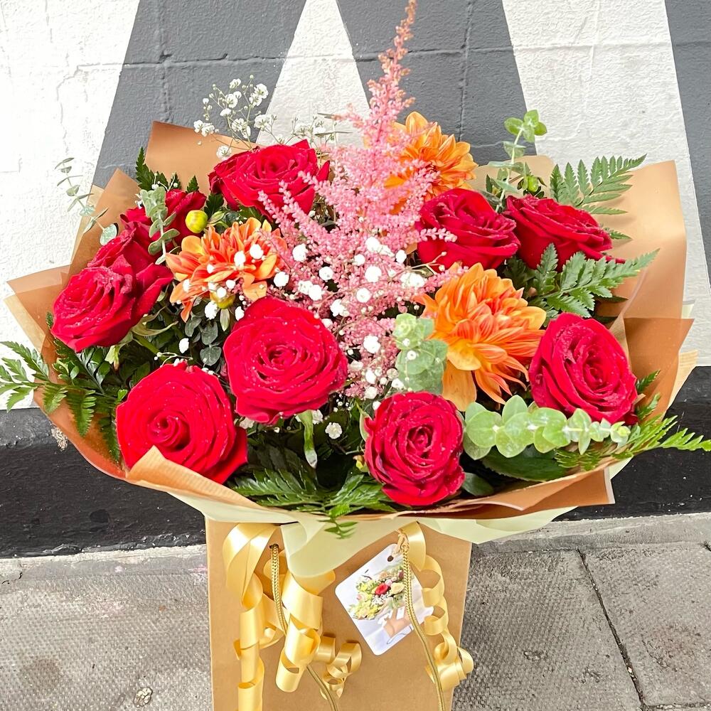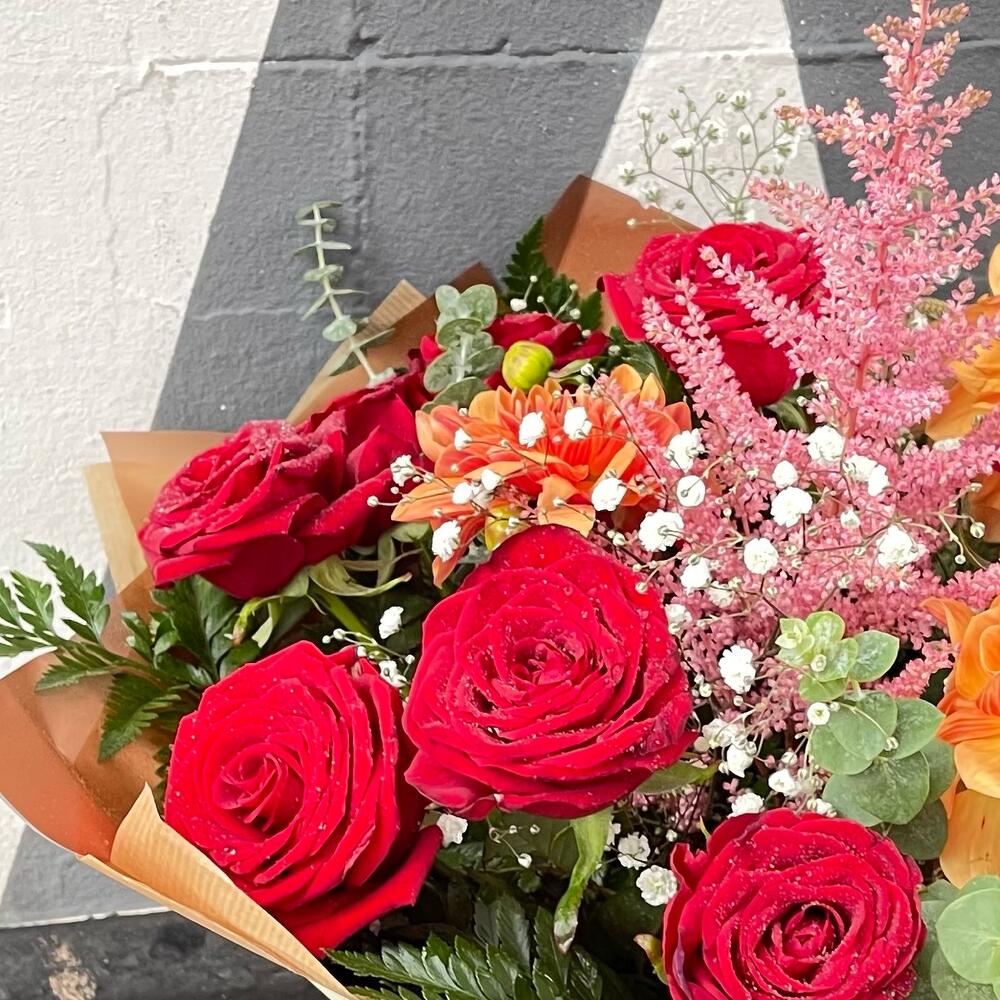 Looking for a bouquet that's as warm and inviting as a cozy fireplace on a cold winter's night? Look no further than our Warming Reds Bouquet, featuring Red Naomi Roses, Eucalyptus, Chrysanthemum and Gypsophila. This stunning bouquet boasts a rich and vibrant blend of deep reds, delicate whites, and fragrant greens, making it the perfect gift for any occasion, from birthdays and anniversaries to Valentine's Day and beyond. With its combination of bold Red Naomi Roses, delicate Eucalyptus, and charming Chrysanthemum and Gypsophila, this bouquet is sure to warm the hearts of everyone who receives it. Order your Warming Reds Bouquet today and share the love with someone special.