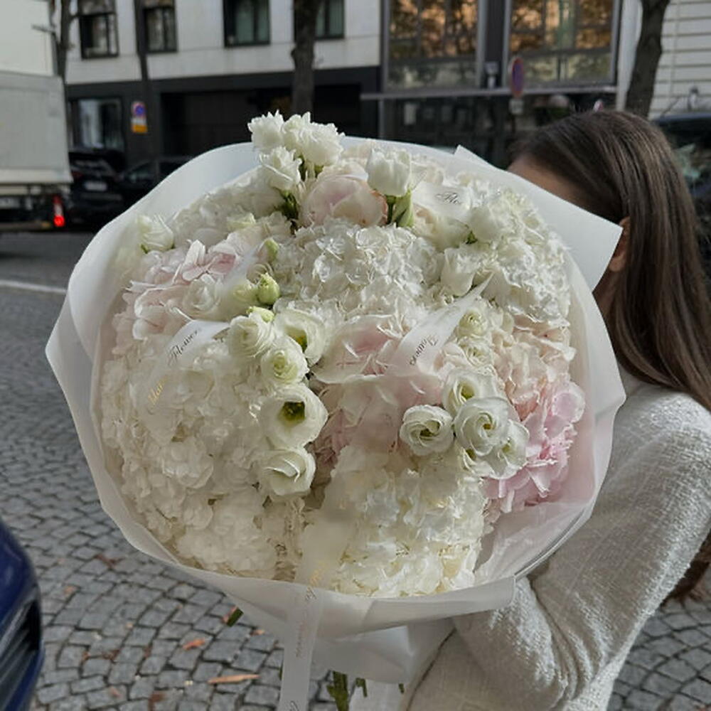 Experience the exquisite charm of our Florists Special, an enchanting mixture of 30 white blossoms, featuring the lush elegance of hydrangeas, the timeless beauty of roses, and delicate Lisianthus blooms. This bouquet promises to add a touch of elegance and tranquility to any space, making it a perfect gift or a stunning addition to your home.