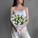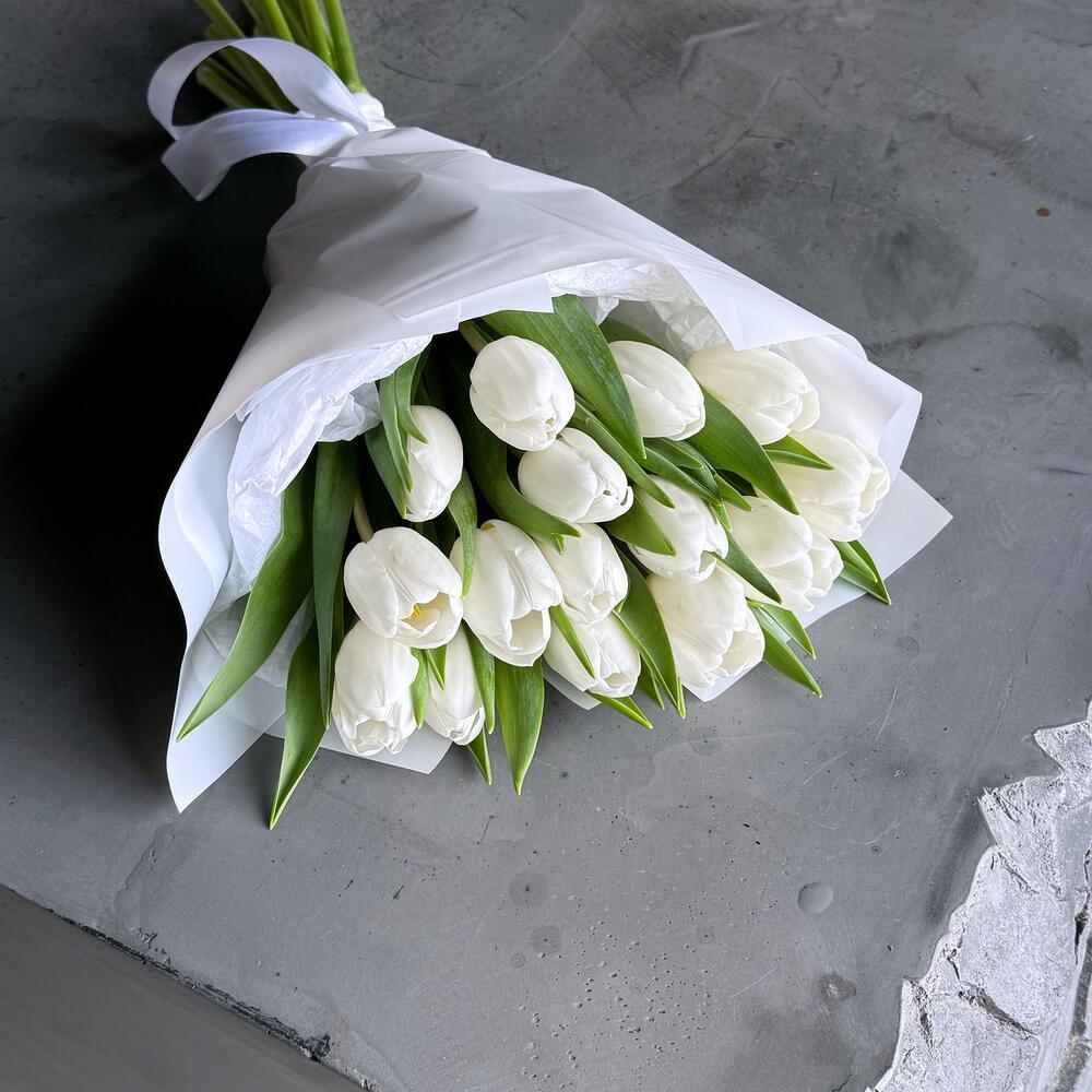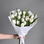 A beautiful bouquet of 15 elegant white tulips that radiates purity and sophistication. The fresh blooms are arranged into a graceful composition and wrapped in stylish paper to highlight their natural beauty. A wonderful gift for birthdays, celebrations, congratulations, or simply to brighten someone’s day with a touch of elegance.