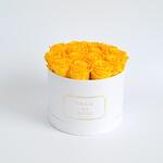 Radiating sunshine and joy, this vibrant arrangement of yellow preserved roses brings instant happiness to any space. The roses are elegantly presented in a crisp white hatbox with gold detailing, creating a timeless and uplifting gift that suits any joyful occasion — from birthdays to thank-you gestures. These are real roses that have undergone a special preservation process to maintain their beauty for over a year. No watering or direct sunlight needed — just display them in a cool, dry place and enjoy their charm with zero fuss.