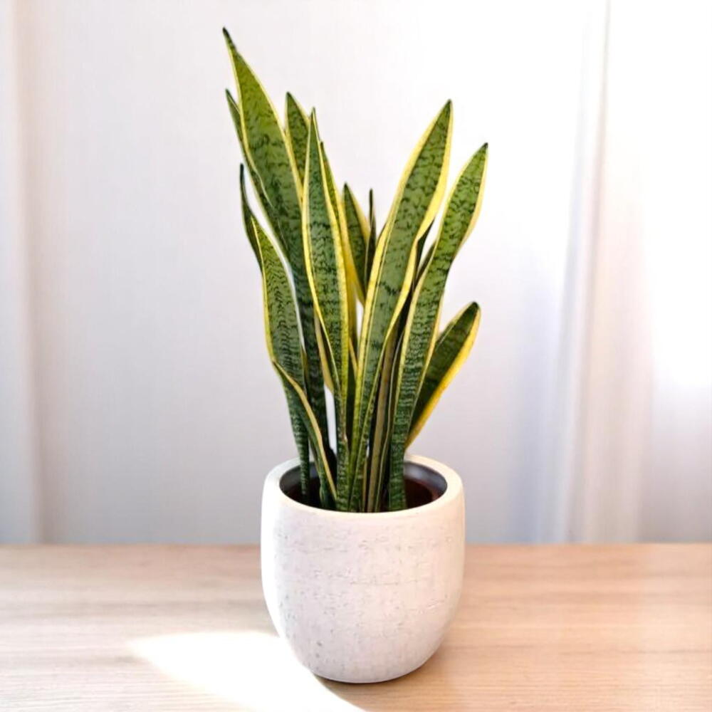 Introducing the beautiful Sansevieria Trifasciata, also known as the Snake Plant – a stylish and low-maintenance addition to any home. With its bold, upright green leaves striped with yellow edges, this plant adds a touch of elegance to any room while purifying the air. Its sleek design makes it a perfect fit for modern interiors, whether placed on a table, shelf, or desk. The Snake Plant is a hardy and resilient plant, making it ideal for both beginners and seasoned plant enthusiasts.