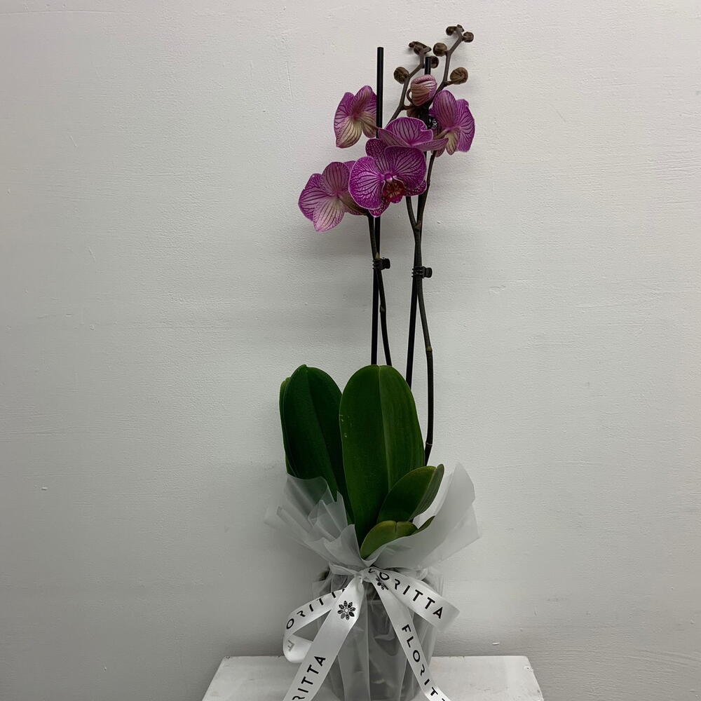 Очень красиво упаковали орхидею, открытка в стиле магазина. Выглядит презентабельно, получился отличный подарок!