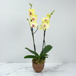 This classic and stunning plant makes a statement for any occasion. It has bright and bold colours spread across its many long lasting blooms. These Orchids are specially from selected growers to ensure big blooms and exceptional quality. With their delicate winged shaped and long-lasting blooms perched on tall branch like stems, its no wonder why Orchids are a favourite among plant lovers. Available in Brown or White pots. 14cm Diameter, 40-60cm Height