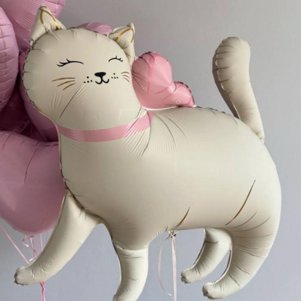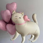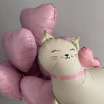 A sweet balloon arrangement featuring a big foil cat balloon paired with pink heart-shaped balloons. Perfect for children’s birthdays, baby showers, cat lovers, Valentine’s Day, or simply as a cute and playful surprise for someone special.