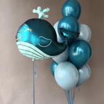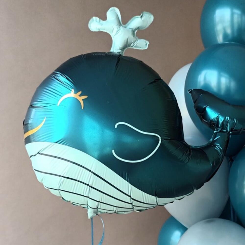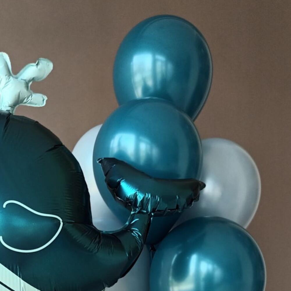 A cheerful balloon arrangement featuring a big smiling whale foil balloon paired with glossy blue and light blue balloons🐳 Perfect for children’s birthdays, baby showers, ocean-themed parties, or as a fun and playful gift for little ones who love sea animals.