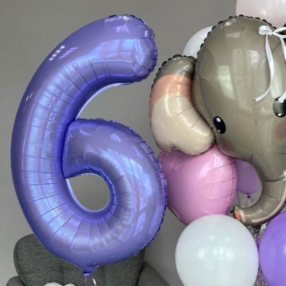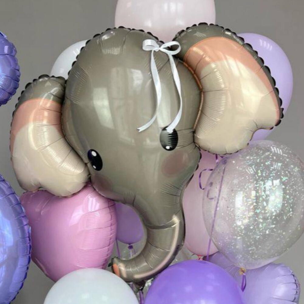 A cute and colourful balloon arrangement featuring a big elephant foil balloon, pastel and glossy balloons in lilac, pink, and white tones, a confetti balloon, and a large number balloon🐘 Perfect for children’s birthdays, baby showers, or themed parties, bringing a playful and cheerful vibe to any celebration. The number can be customised — simply leave a comment with your order or send us a direct message to choose the digit you need.