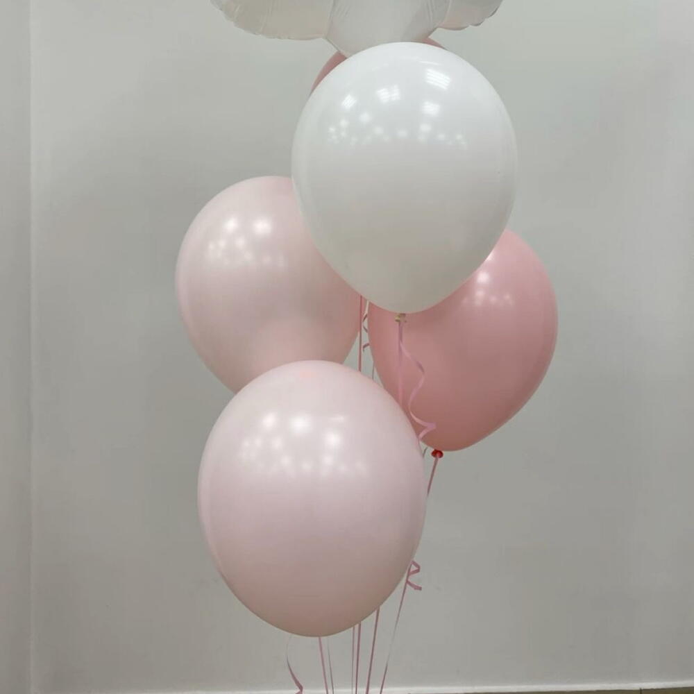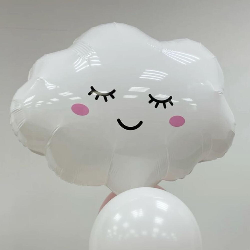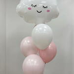 A sweet and dreamy balloon arrangement featuring a big smiling cloud foil balloon with pink cheeks, paired with soft pastel pink and white balloons. Perfect for baby showers, children’s birthdays, gender reveal parties, or simply to add a cute and playful touch to any celebration☁️