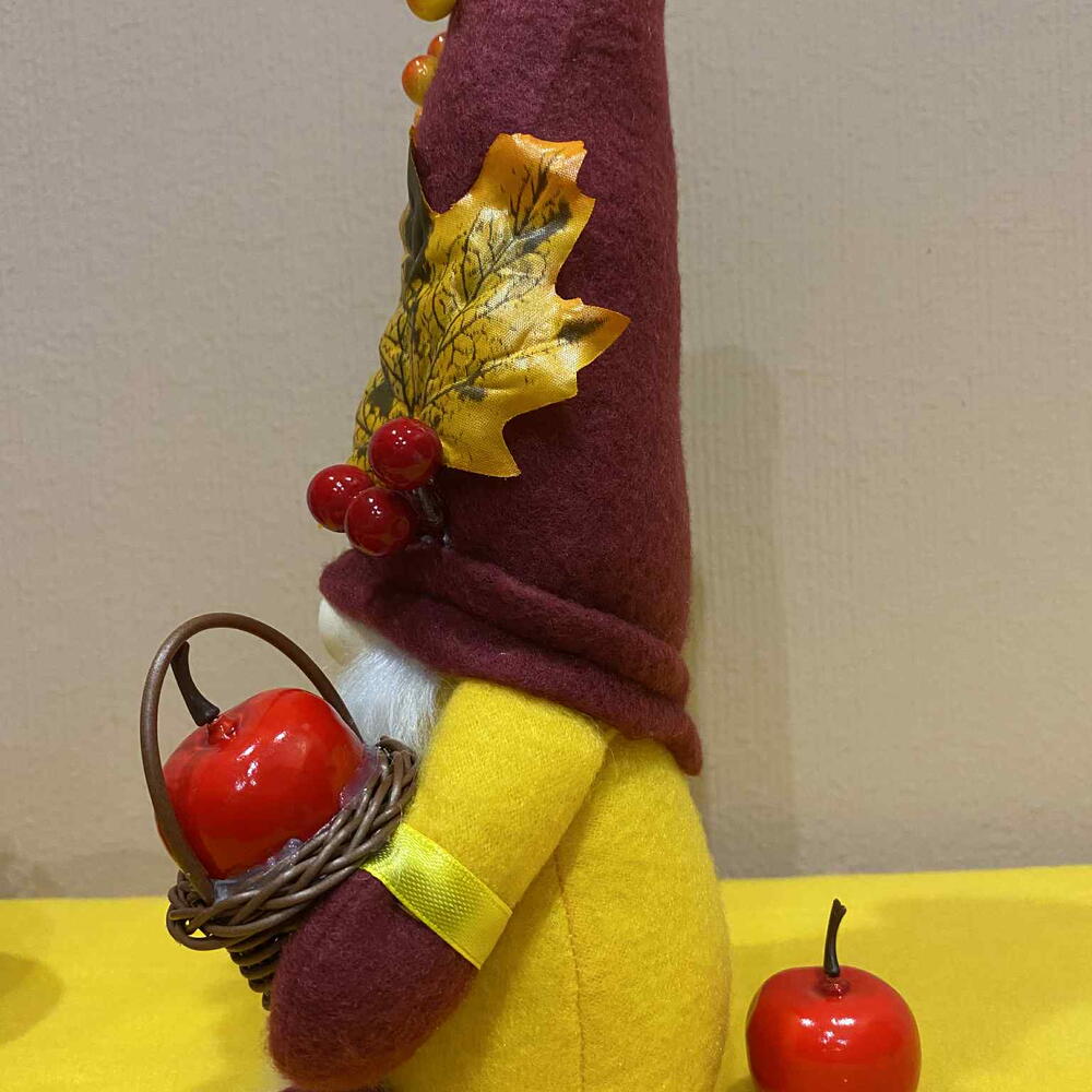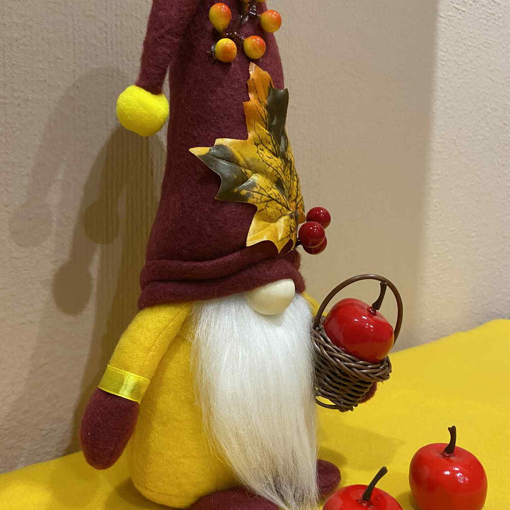 Ручной осенний гном – 40 см (30 см в сидячем положении) Лимитированная серия осенний скандинавский томте с корзинкой и листом Привнесите очарование осени в ваш дом с этим ручным скандинавским гномом (Tomte/Gonk). Изготовлен с заботой из высококачественного фетра, декоративных ягод и натуральных текстур, этот лимитированный гном включает в себя: ✔ Глубокая бордовая шапка с осенним листом и ягодными деталями ✔ Длинная мягкая белая борода ✔ Плетёная корзинка с блестящим красным яблоком ✔ Золотисто‑жёлтый наряд для сезонного уюта Размер: Примерно 40 см в высоту при прямой шапке Около 30 см, как на фото, при согнутой шапке Идеально для: 🍁 Декор для осеннего урожая 🎃 Оформление к Хэллоуину и Дню Благодарения 🎄 Любителям коллекционных гномов 🏡 Уникальный подарок ручной работы Каждый гном сделан вручную и является лимитированным выпуском, поэтому ни один из них не похож на другой. Добавьте немного магии и уюта в свои сезонные украшения уже сегодня!
