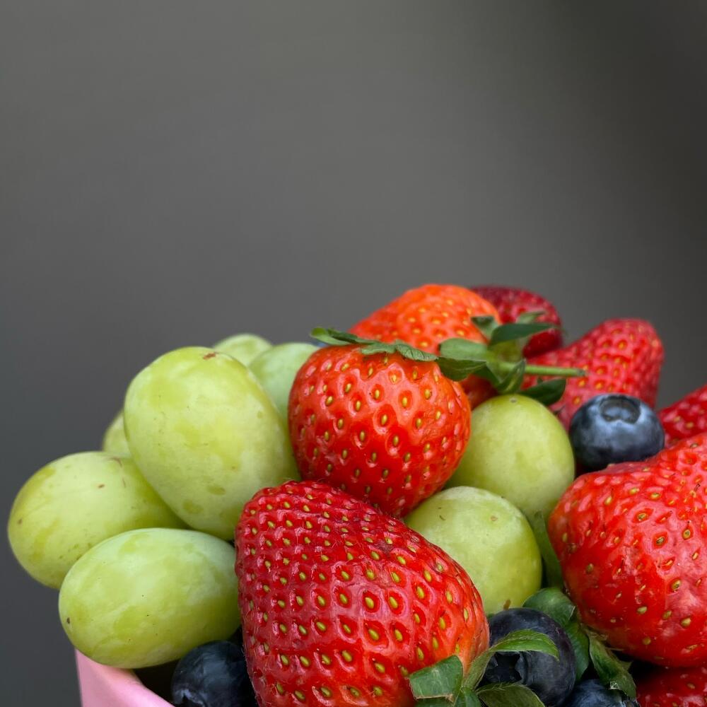 Box - 1 шт. grapes - 1 шт. blueberry - 100 гр. strawberiies - 200 гр.