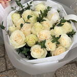 eucalyptus stems - 3 шт. decorative ribbon - 1 шт. premium wrapping paper - 1 шт. cream roses - 20 шт.