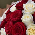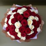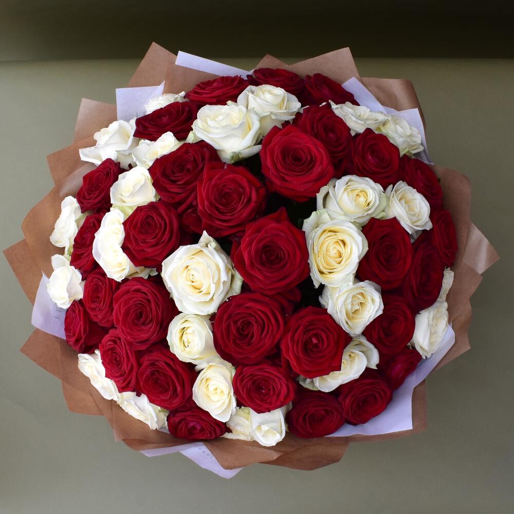 Red rose - 25 шт. Ribbon - 1 шт. White rose - 25 шт. packaging - 1 шт.