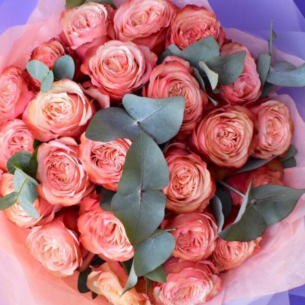 Ribbon - 1 шт. Eucalyptus - 10 шт. Ecuadorian rose - 25 шт. packaging - 1 шт.