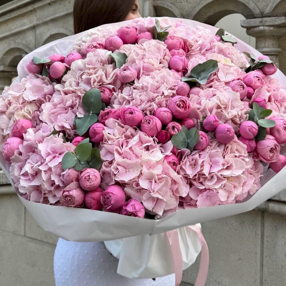 Hydrangea - 10 шт. Leaves - 5 шт. букет роз в брызгах - 10 шт.