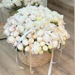 Basket with white peonies