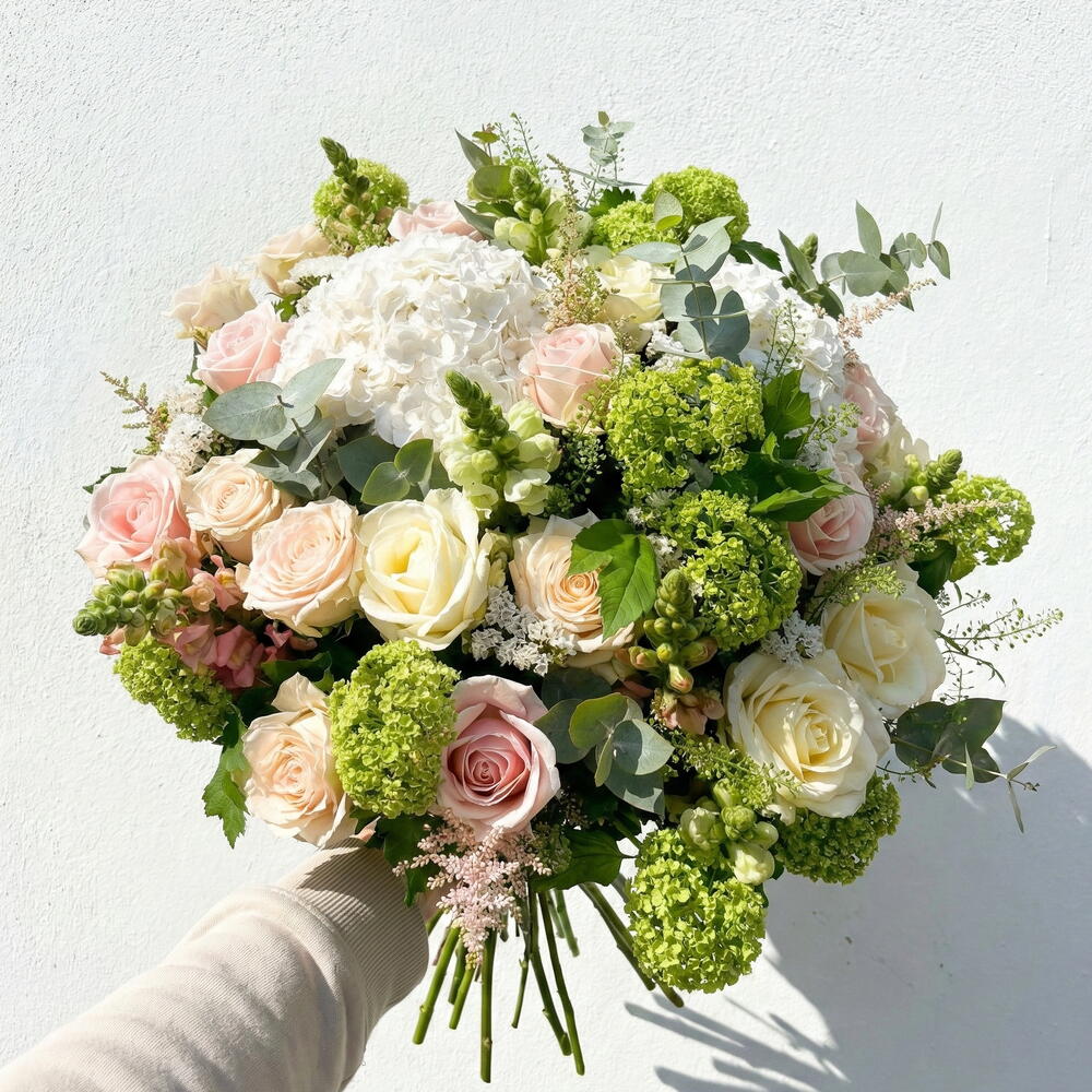 Beauty Vibes — свежий, элегантный букет класса люкс, выполненный в мягких пудрово-розовых, айвори и натурально-зеленых тонах. В композиции пышная гортензия, премиальные розы и воздушные сезонные акценты; букет воплощает современный европейский флористический стиль с лёгким, органичным ощущением. Идеален для дней рождения, свадеб, годовщин, празднования в честь рождения ребёнка или изысканного декора дома, он прекрасно подойдёт покупателям, ищущим букет с гортензией и розами, пастельные люксовые цветы или романтическую композицию в зелёно-пудрово-розовых тонах. Сбалансированная палитра и щедрый объём делают этот букет вневременным, грациозным и непринуждённо шикарным.