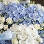 голубые гортензии - 10 шт. белые гортензии - 5 шт. spray white roses - 10 шт.