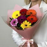 This magnificent bouquet of seven multicolored gerberas will embody your love and affection. A gift that will faithfully convey all your feelings and emotions. These lush and vibrant gerberas are a true delight for the eyes and brighten your home from the very first moment. This bouquet is the ideal choice for any occasion, whether its a celebration or simply a special day.