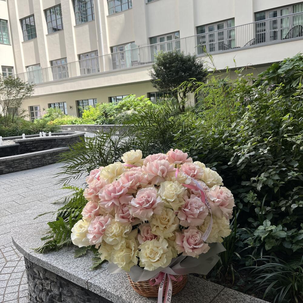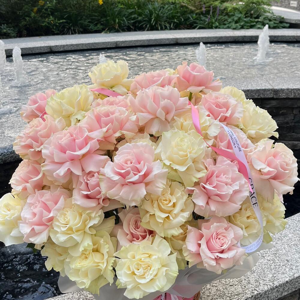 белые розы - 40 шт. розовые розы - 50 шт.