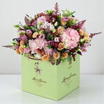 Пышный букет, связанный вручную, который передаёт тихую романтику осени. Нежно-розовые и глубокие бордовые розы переплетаются с пышными гортензиями, чьи лепестки раскрываются в розовых оттенках. Более тёмные тона придают бархатистую глубину, в то время как более светлые оттенки приносят баланс и изящество, навевая образ мягкого падения листьев в сумерках. Идеально подходит для осенних свадеб, сезонных торжеств или в качестве подарка, который говорит о тепле, красоте и вечном очаровании.