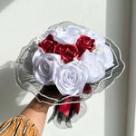 Удивите своих близких вневременным букетом, сочетающим романтику и элегантность в одном идеальном подарке. Этот букет, созданный с любовью вручную, доставляется точно в таком виде, как показано на картинке, поэтому вы можете дарить его с уверенностью. 🎀 🌸 Что внутри: 10 белых роз из атласной ленты – символизируют чистоту, доверие и вечную преданность 🤍 3 красные розы из атласной ленты – символизируют смелую, страстную любовь, которая никогда не угасает ❤️ Маленькие белые цветочки-наполнители – добавляют контраста в детали Обернуты мягкой черной тканью с перламутровой каймой для нежного завершения 💟 Идеальная форма сердца для роскошной презентации Красный атласный бант, завязанный вручную – завершающий штрих романтики и изящества 🎀 ✨ Почему вам это понравится: Сделано с любовью вручную в Великобритании Доставляется точно так, как на картинке – никаких сюрпризов Долговечны, не требуют ухода (не требуют полива) Элегантные, легкие, легко разместить где угодно Идеально подходят для дней рождения, годовщин, свадеб или чтобы сказать «Я люблю тебя» 🎁 Готовый подарок, идеально подходит для ваших любимых и близких 💕