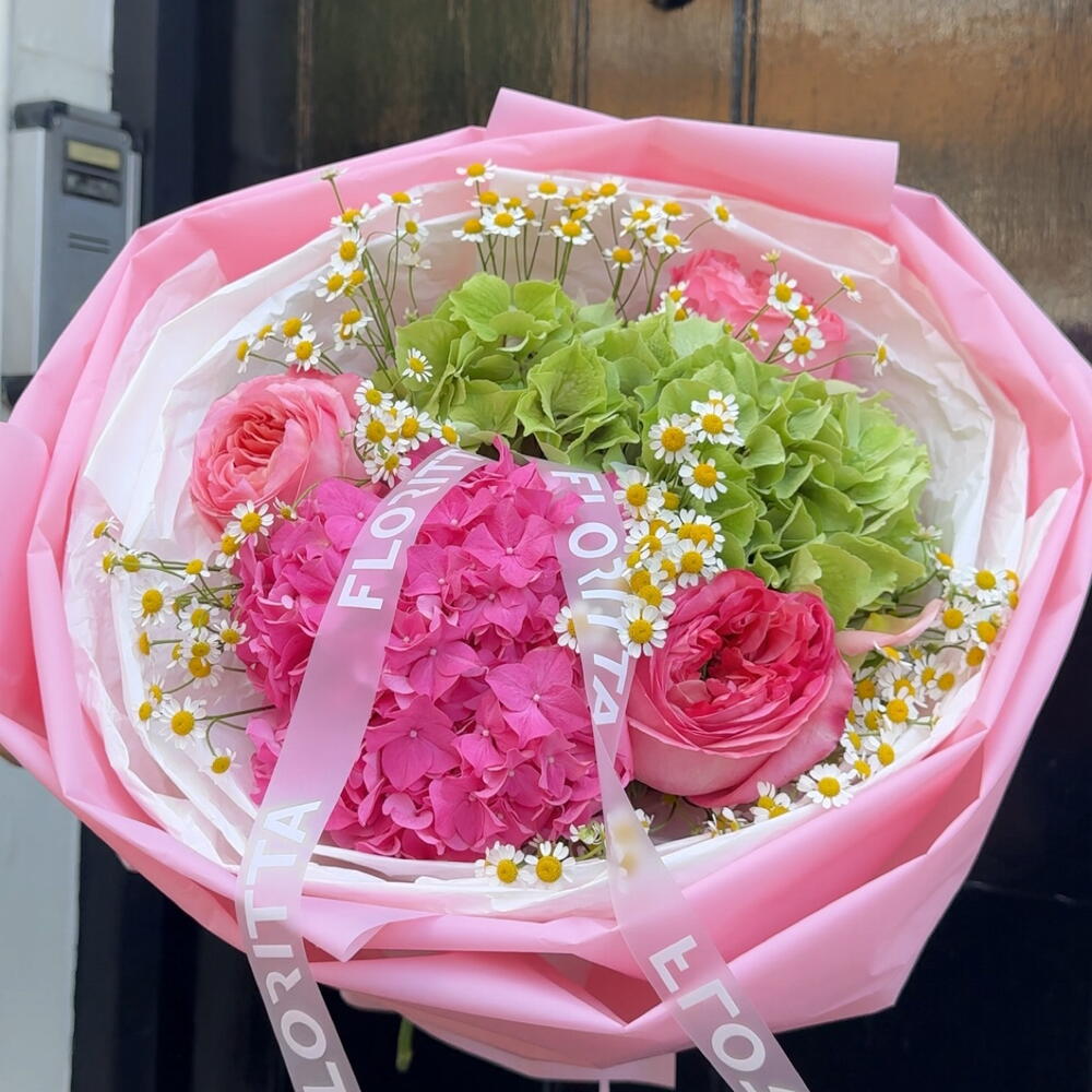 daisies - 20 шт. hydrangeas - 4 шт. roses - 3 шт.