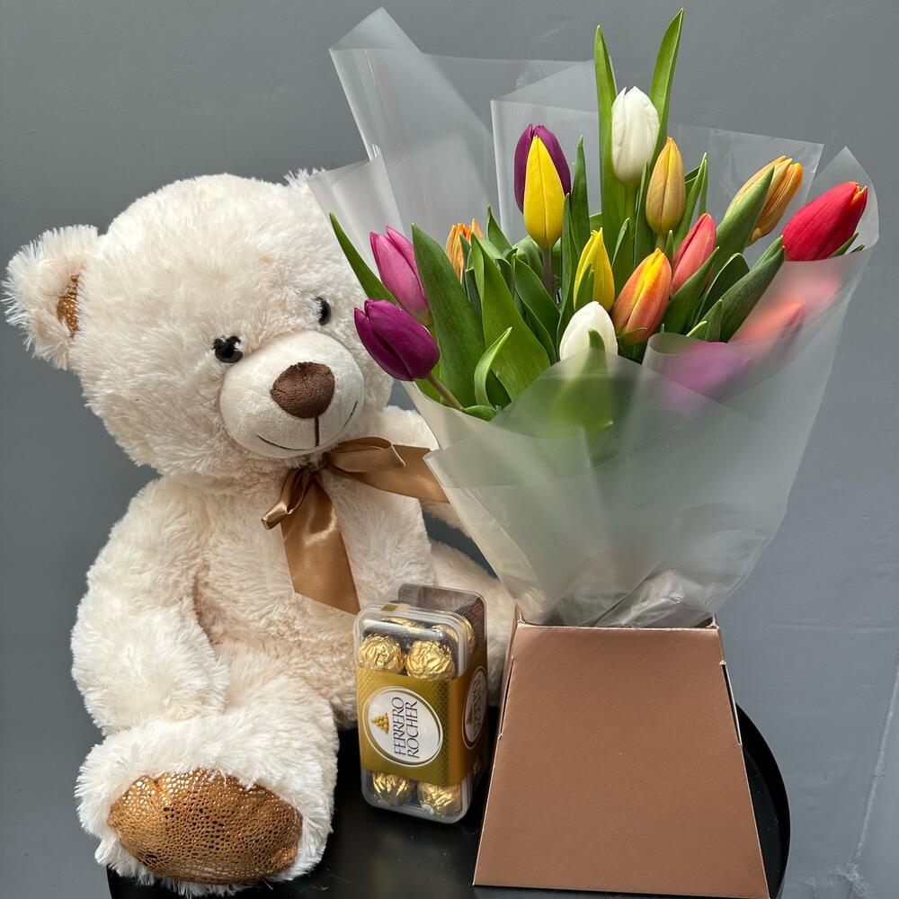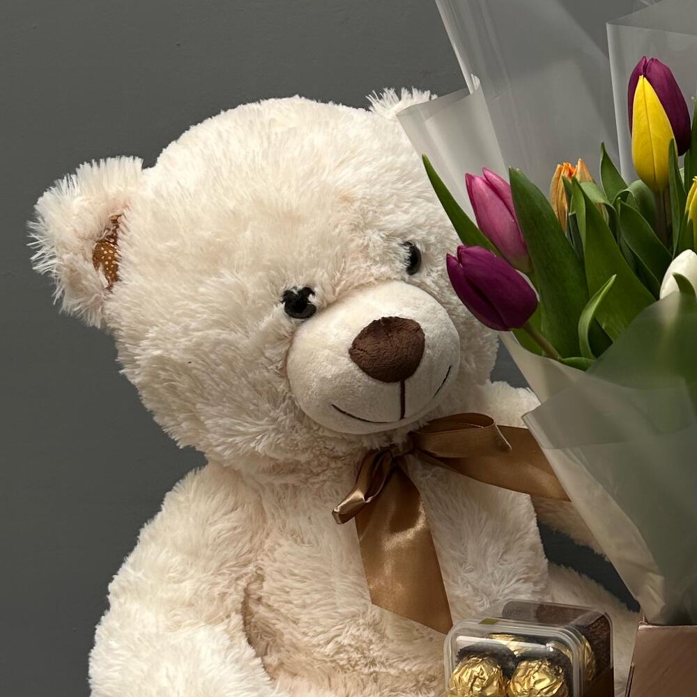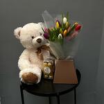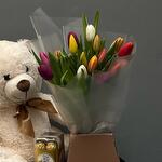 Tulips - 16 шт. soft toy - 1 шт. box of chocolates - 1 шт.