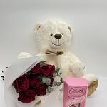 Vase - 1 шт. soft toy - 1 шт. red roses - 8 шт. chocolate lindt - 1 шт.