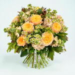 Яркие летние тона уже в пути, надеемся, что они подойдут к предстоящему лету! Golden Vuvuzela — одна из наших любимых роз, поэтому неудивительно, что она снова присутствует в одном из наших букетов. Её раскрытый цветок гарантирует, что она находится в полном цветении и в расцвете на протяжении всей своей жизни. Её мягкие персиковые лепестки идеально сочетаются с ярко-жёлтым солидаго и нежно ароматной кремовой маттиолой, создавая по-настоящему золотой букет!