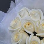 This bouquet will create a perfect light atmosphere and last a long time. Еach order comes with an aqua bag and flower food Please care for your flowers by cutting off stems with a sharp knife or scissors. By placing them in deep water prior to arranging in a clean container, having removed any foliage which would be below water level. Avoid putting flowers in direct sunlight, draughts or hot locations. Always use flower food provided. Roses: as above. If the roses wilt, re-cut and plunge stems in 2” of boiling after for 1 minute then plunge into deep water. Flower arrangement: add some water daily to the foam of the arrangement