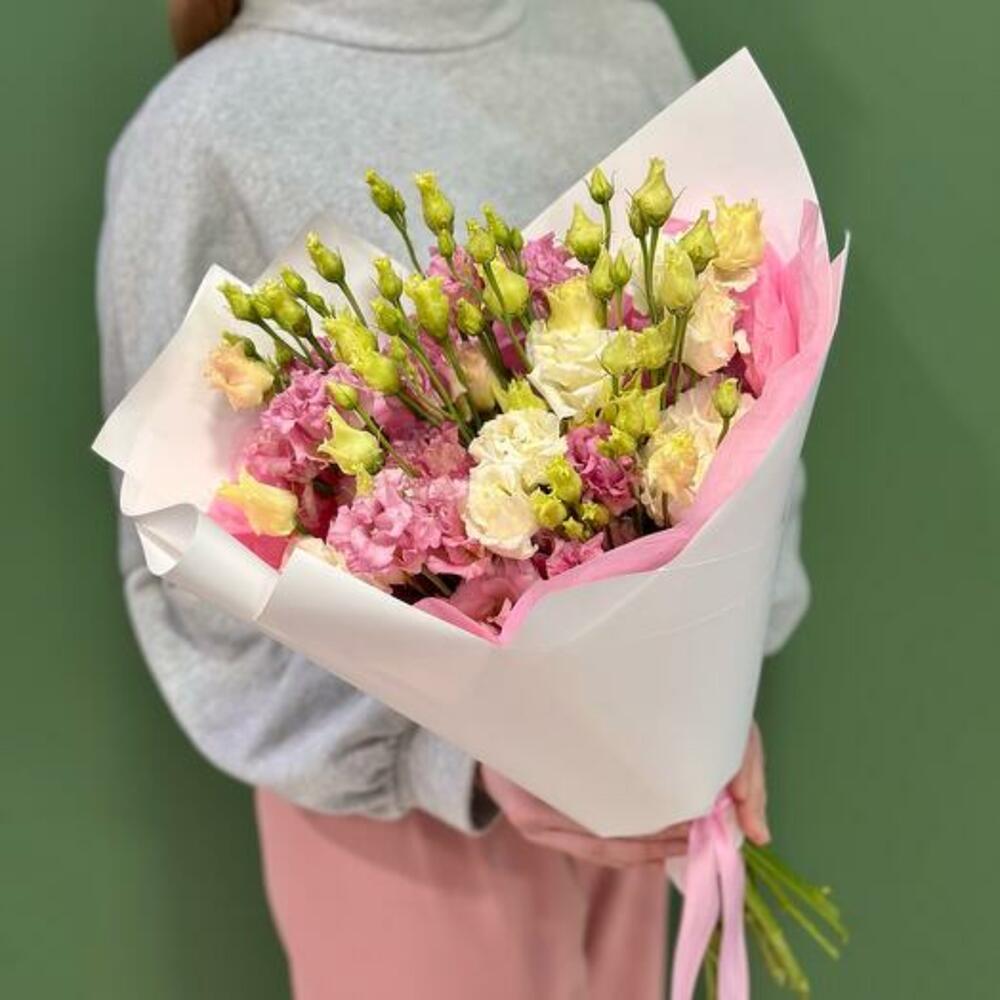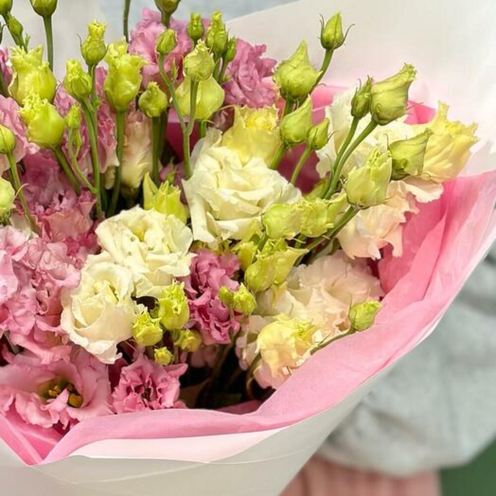Примите красоту нашего букета, в котором гармонично сочетаются белые и розовые лизиантусы. Каждый цветок демонстрирует мягкие, рюшевые лепестки лизиантуса, излучая нежное очарование и вечную элегантность. Чисто белые цветы символизируют чистоту и изящество, а нежно-розовые добавляют нотку романтического притяжения.