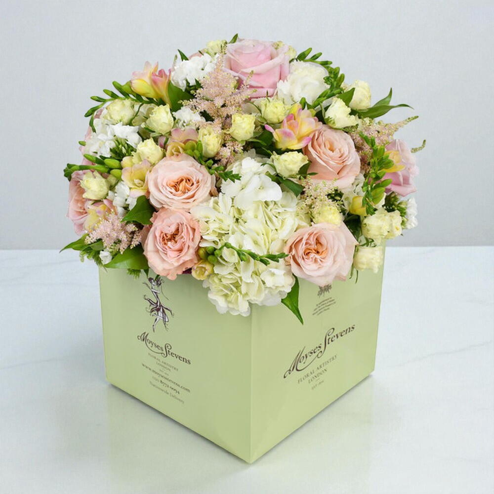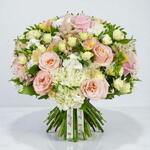 Пастельно-розовые тона и чистые белые оттенки создают эту красоту. Ароматные нежно-розовые фрезии и впечатляющие розы уравновешены чистыми белыми цветами. Это классическое и всеми любимое сочетание цветов с любимыми сезонными цветами наших флористов.