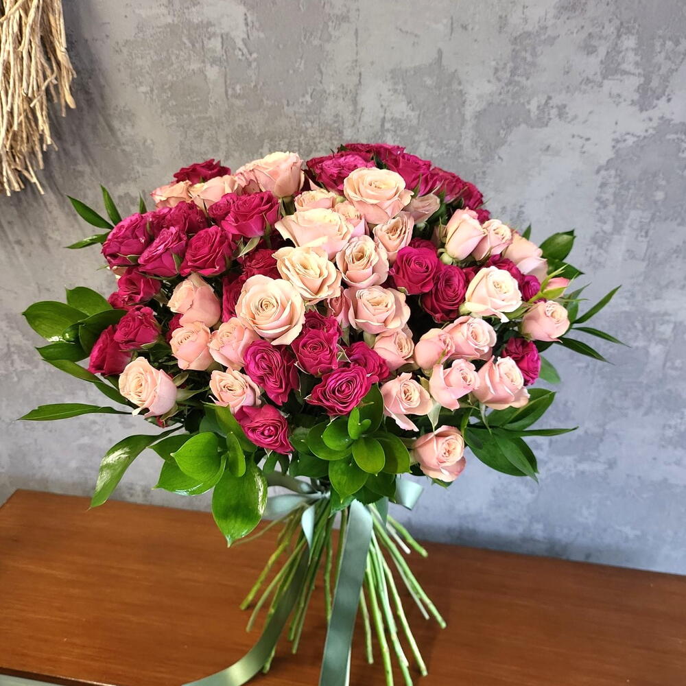 ruscus italian - 15 шт. спрей-розы "Дестини" - 10 шт. спрей-розы Шайенн - 10 шт.