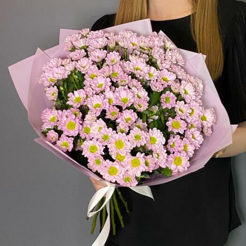 Satin ribbon - 1 шт. packaging - 1 шт. chrysanthemum santini - 15 шт.