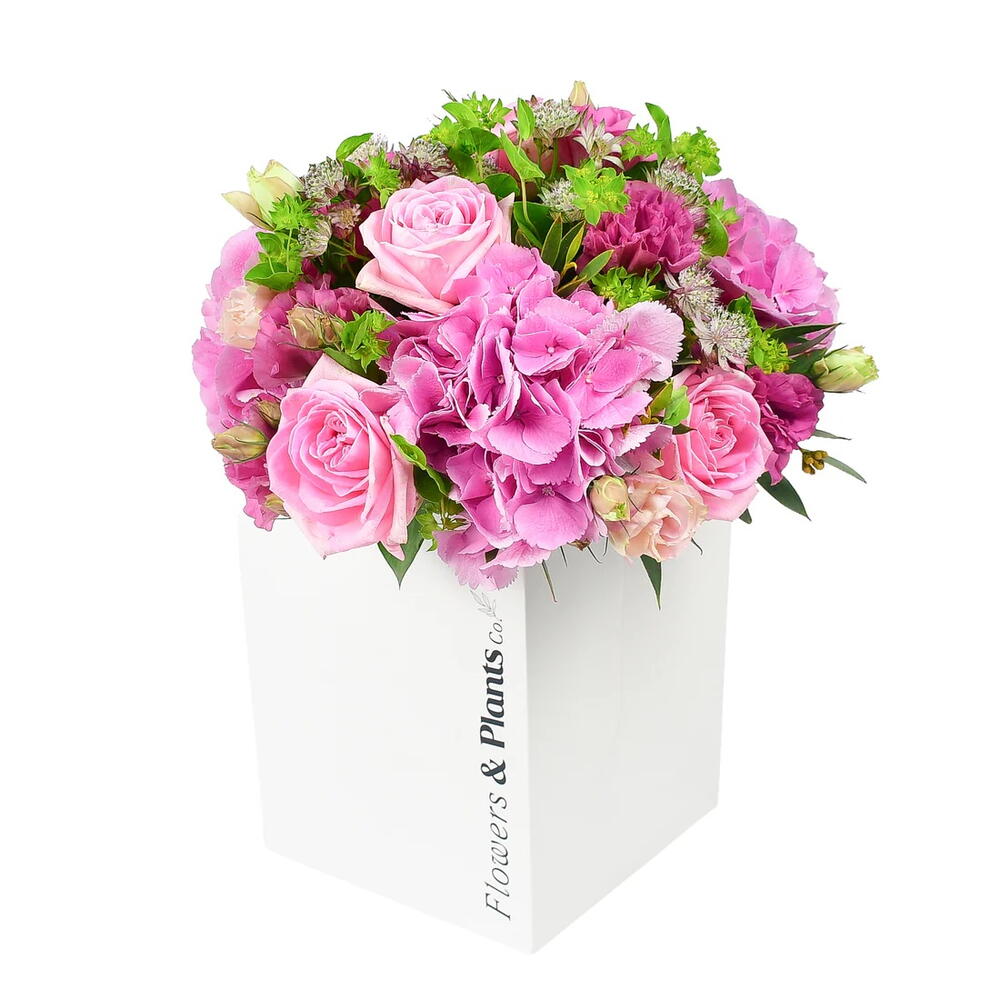 Astrantia - 5 шт. pink lisianthus - 5 шт. pink hydrangea - 2 шт. розовый восковый цветок - 2 шт. pink roses - 5 шт.