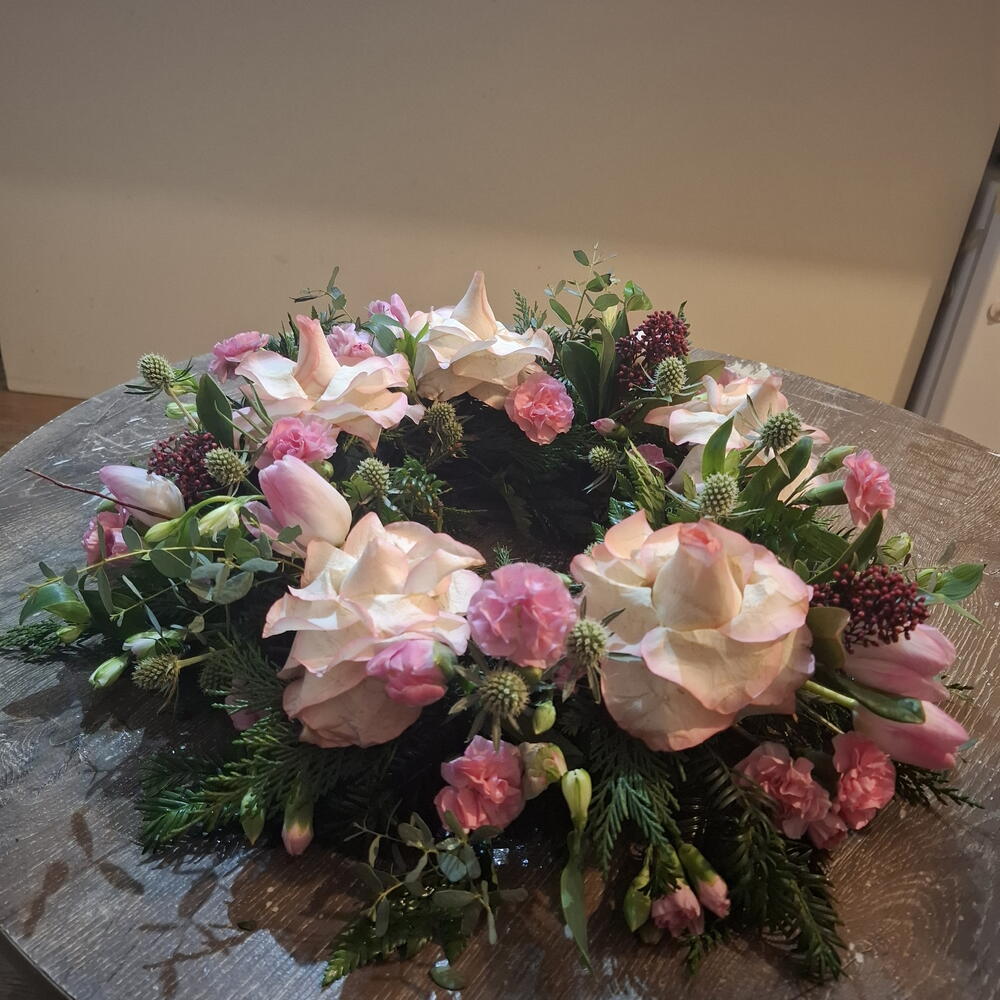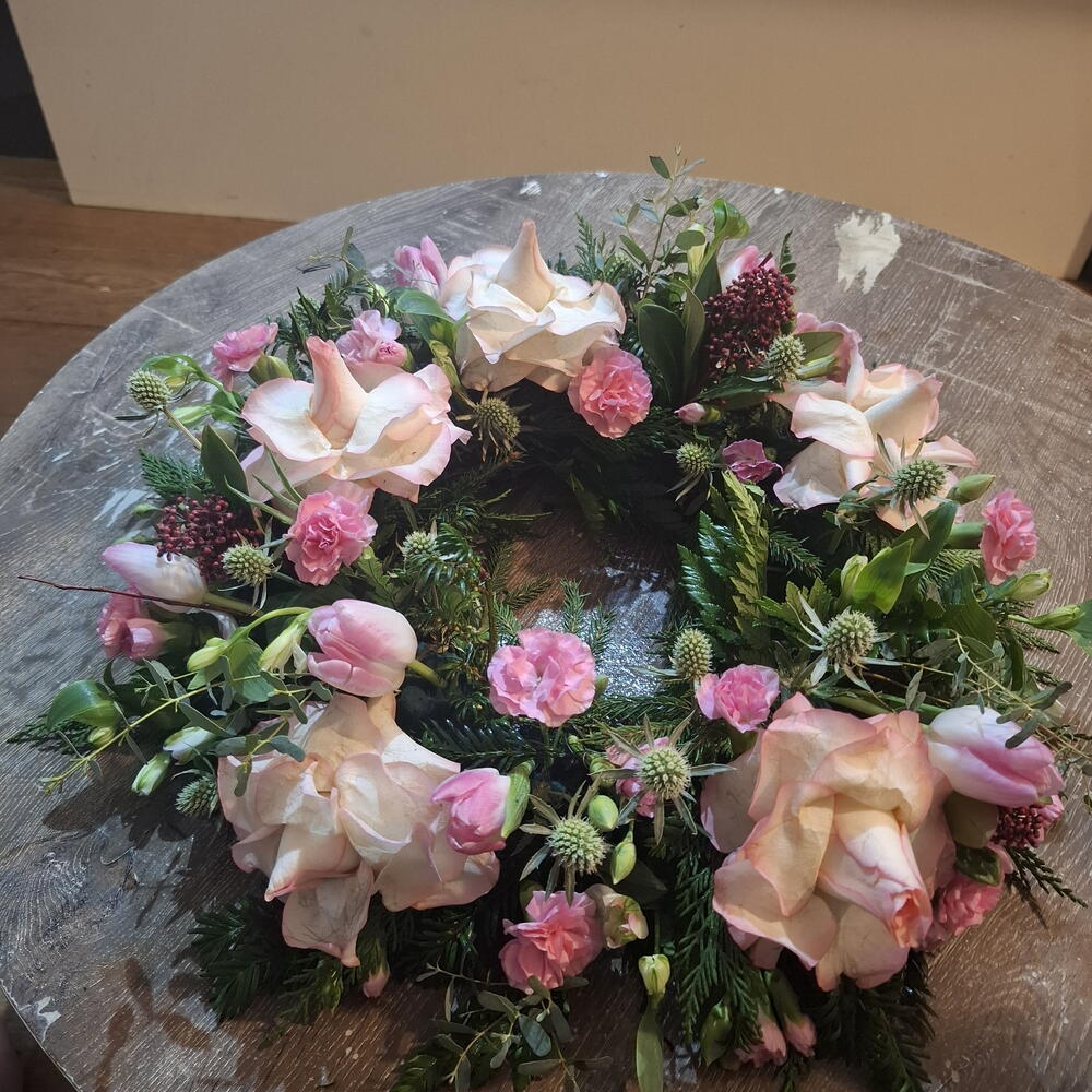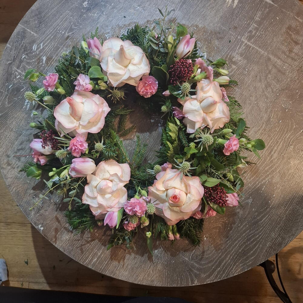 Венок из раскрытых роз 14"