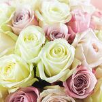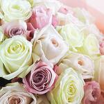 Пастельные роскошные розы – букет из 60 стеблей нежно-розовых и слоновой кости роз.