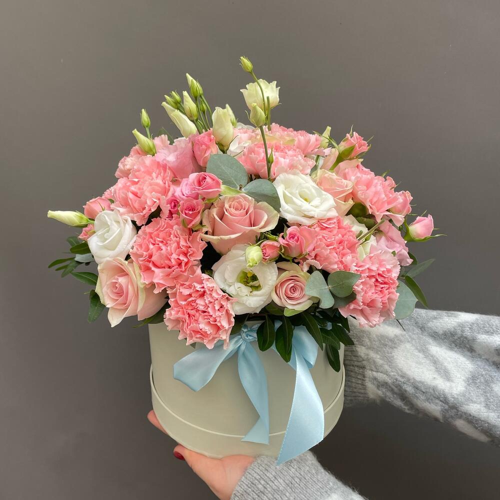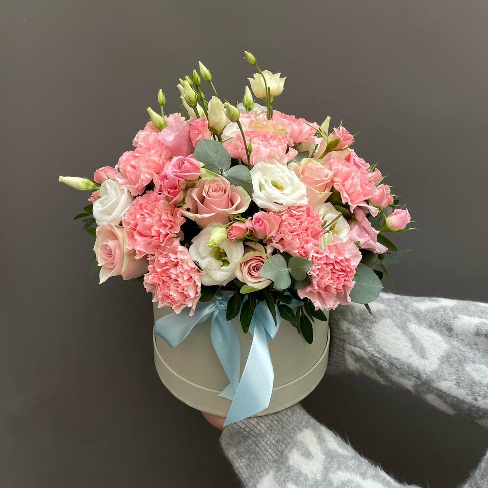 Ribbon - 1 шт. Box - 1 шт. rose - 8 шт. carnation cultivar - 10 шт. lissi - 3 шт.