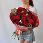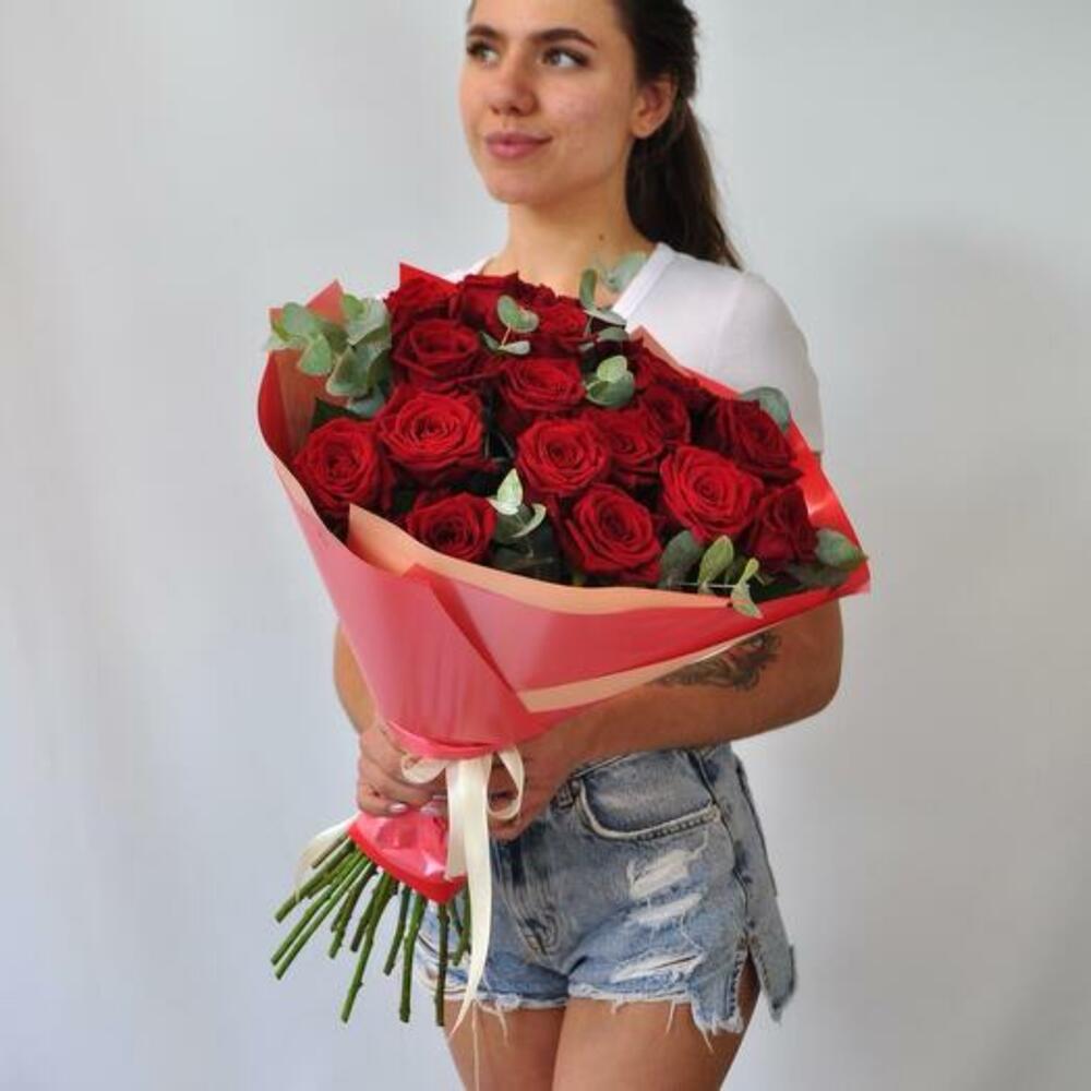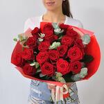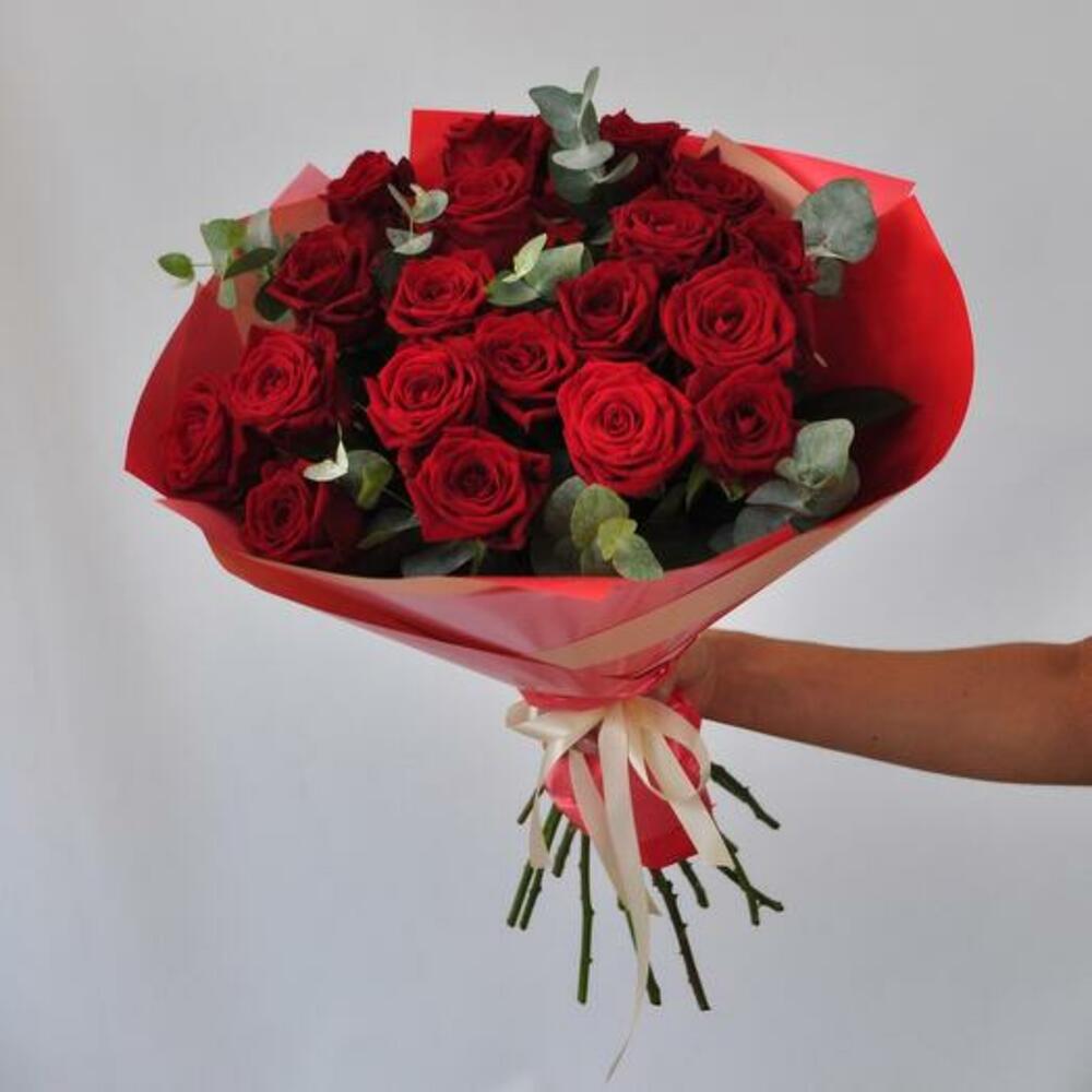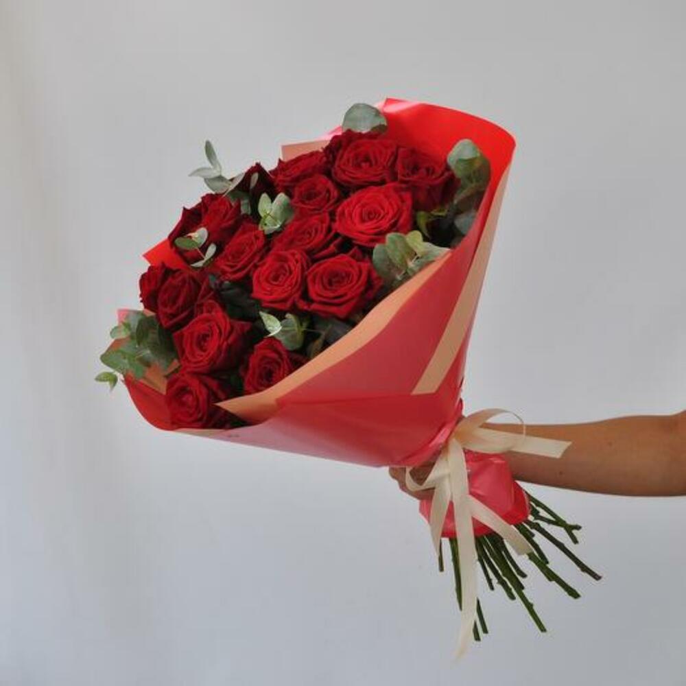 Ощутите страсть и элегантность нашего букета «Лучезарная романтика», в котором 19 ярких красных роз дополняет ароматный эвкалипт. Каждая роза с богатыми бархатистыми лепестками символизирует глубокую любовь и восхищение. Упакованная в эффектную красную упаковку, эта композиция идеально подходит, чтобы выразить ваши искренние чувства по особым поводам или просто поднять кому-то настроение. Сочетание насыщенных красных роз и свежего эвкалипта создаёт запоминающийся и изысканный подарок, который передаёт суть романтики и преданности.