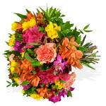 orange carnation - 6 шт. red hypericum - 6 шт. оранжевая альстромерия - 6 шт. розовая альстромерия - 6 шт. желтые фрезии - 6 шт. розовые фрезии - 6 шт.