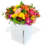 Пройдите Радужную дорогу и откройте для себя ее чудеса... Отправьтесь в уникальное путешествие, погрузившись в потрясающую смесь розово-желтых фрезий, гвоздик, альстромерий и ягод зверобоя.