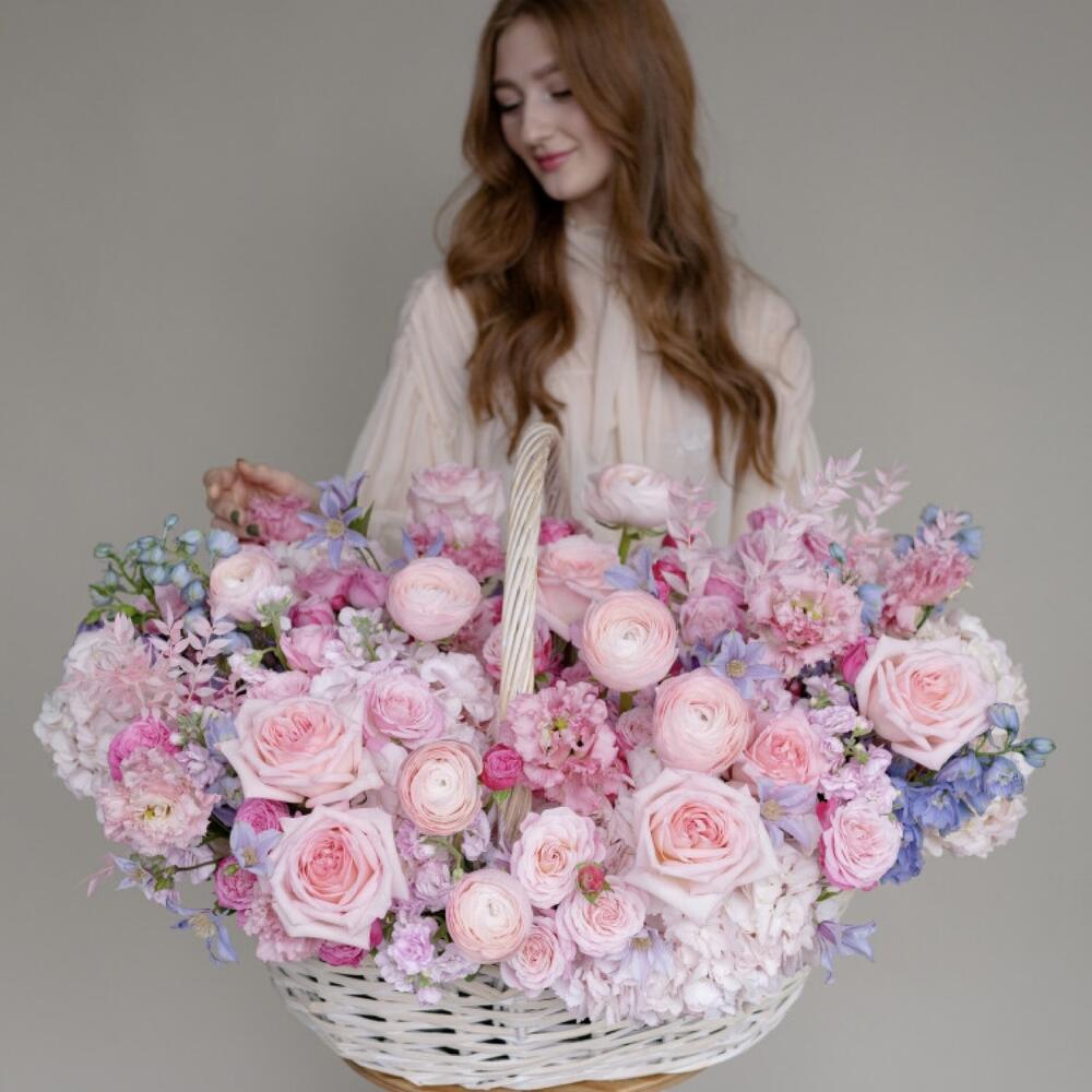 Absolutely gorgeous, soft and elegant basket of mixed flowers only for special one in your life. Colours are pink pastel and it shows all your love to her